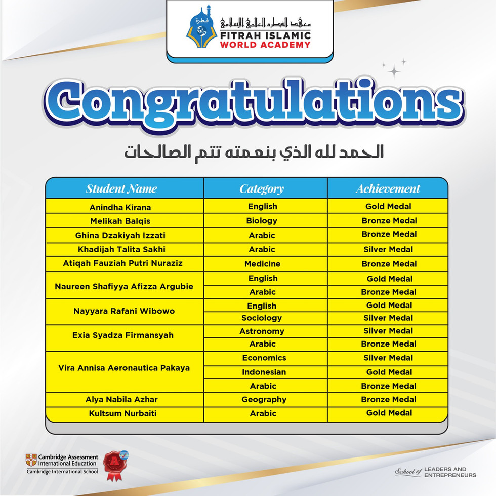 Representing FIWA in various categories—from languages and science to social studies—our students earned multiple medals, including gold, silver, and bronze. Their success reflects their commitment to learning, critical thinking, and consistent effort throughout the journey.