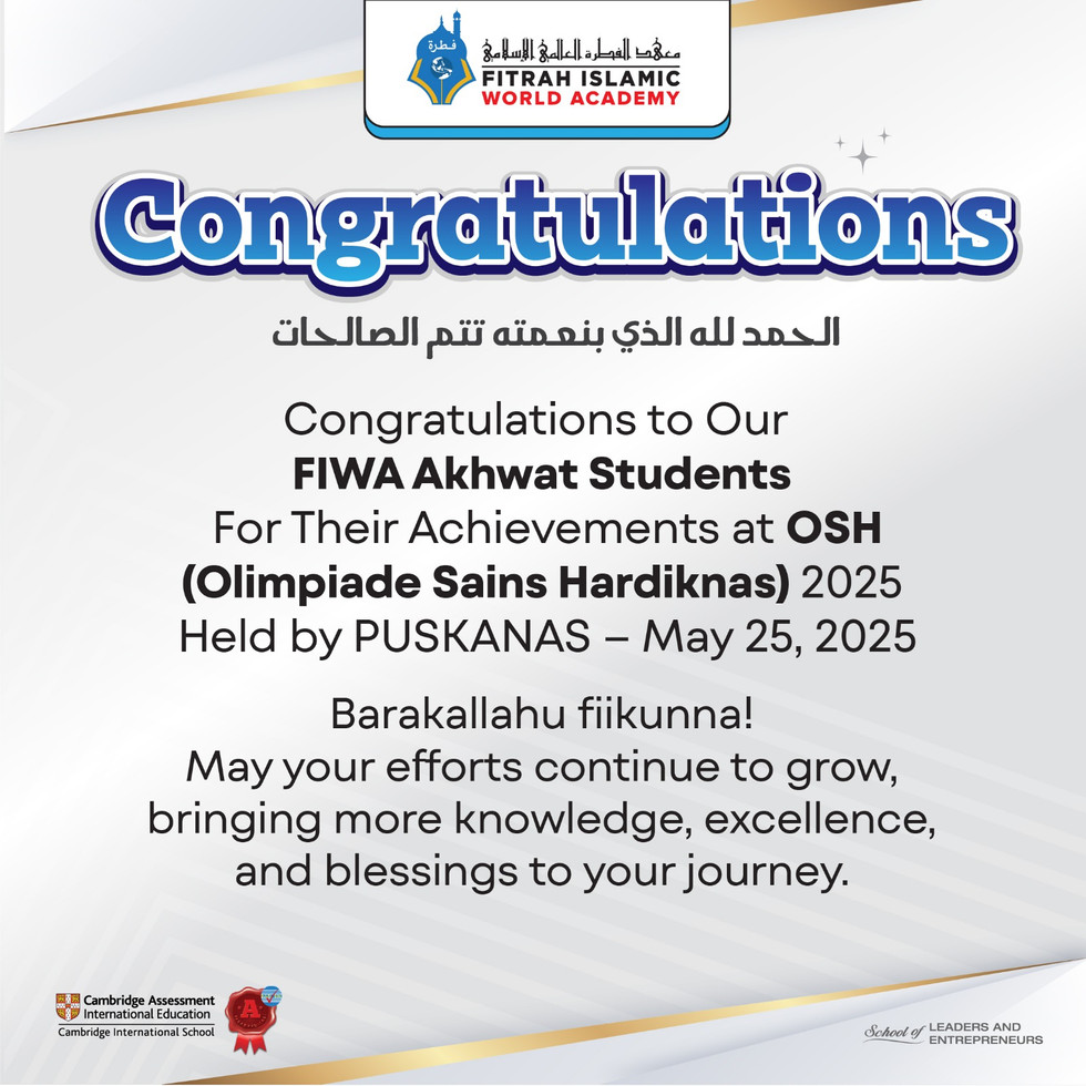 Alhamdulillah, our FIWA Akhwat students have once again made us proud through their achievements at the OSH (Olimpiade Sains Hardiknas) 2025, held by PUSKANAS on May 25, 2025.